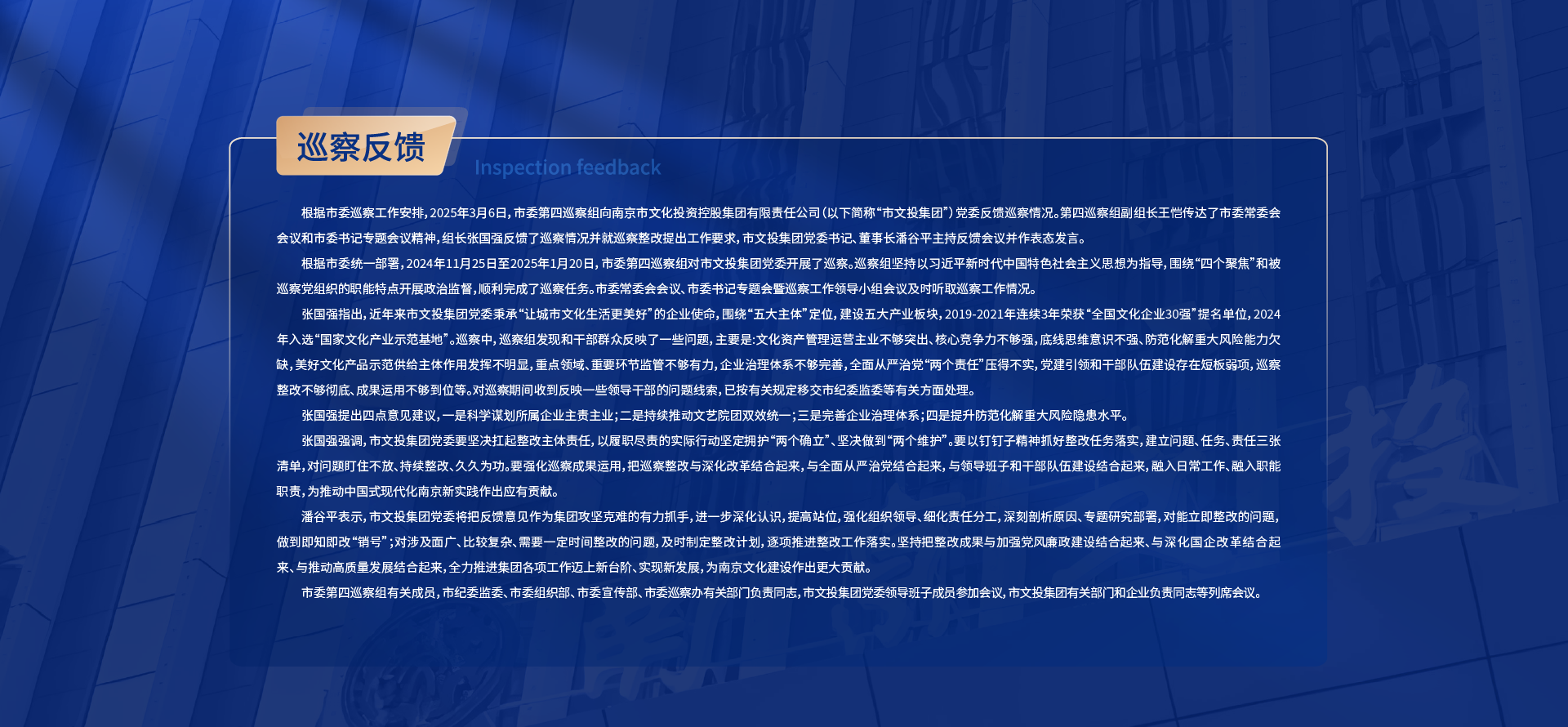 黨建領(lǐng)航南京市文投集團(tuán)領(lǐng)導(dǎo)班子召開2024年度民主生活會(huì)暨巡察整改專題民主生活會(huì)